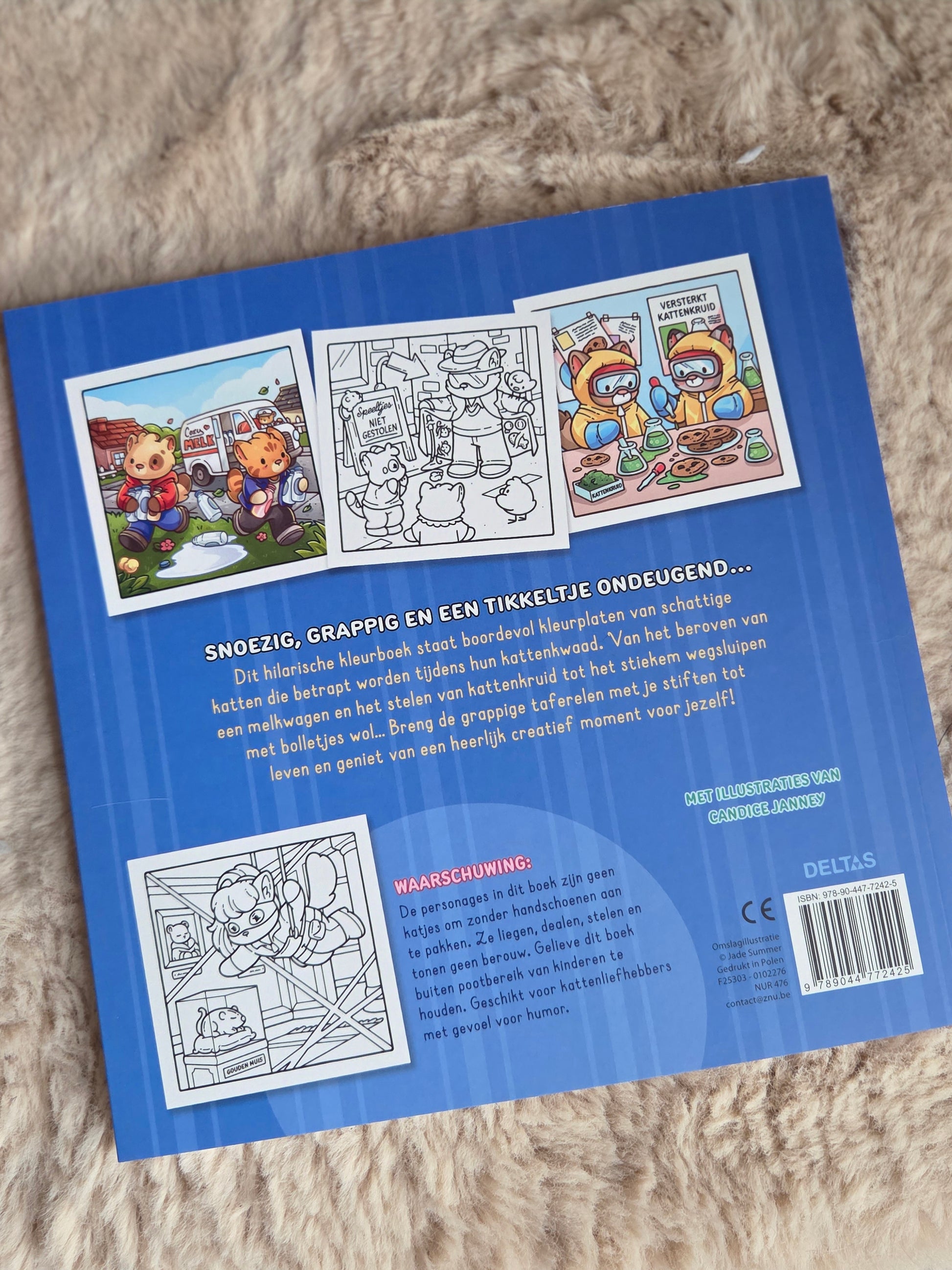 Het Cat Crimes kleurboek van Jade Summer zit vol ondeugende katten die de leukste “misdaden” plegen — van gestolen snacks tot complete chaos in huis 😹